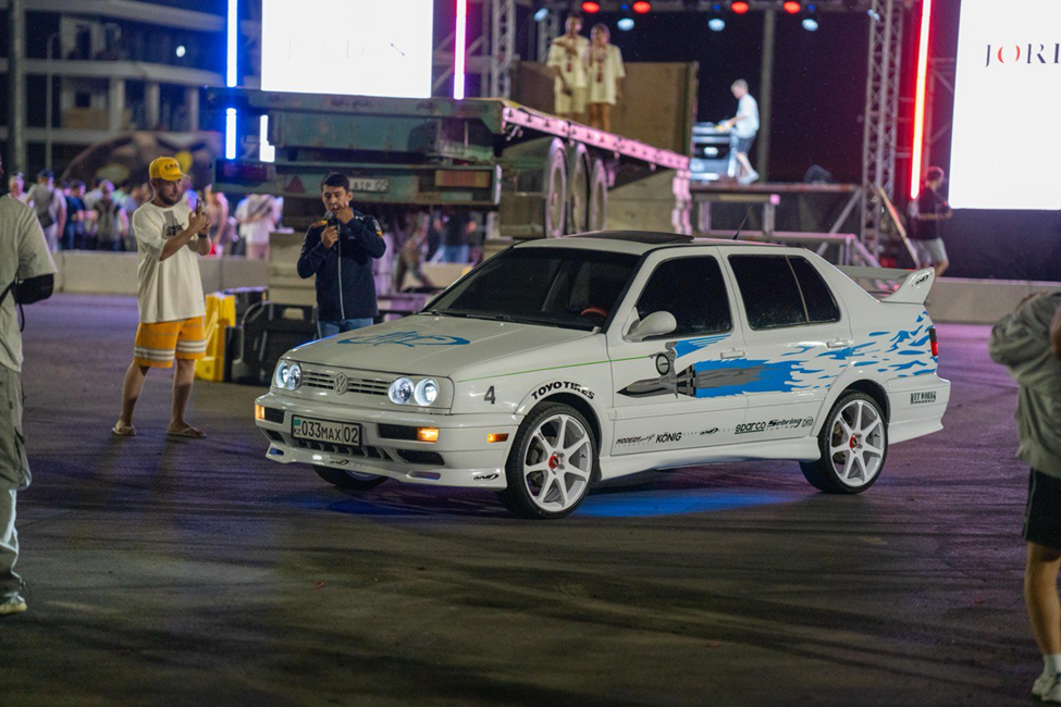 Помимо яркой презентации MG6 и тест-драйва гостей LOW KZ MEET ждали специально привезенные с России автомобили из фильма Форсаж. Стоит отметить, что ребята старались успеть и ехали на всех парах на территорию ASP. А поскольку тематика форсажа продолжалась - вышел узнаваемый всеми Макс Сапаров с своим проектом Jetta, которая собиралась аналогично автомобилю из первой части фильма Форсаж.